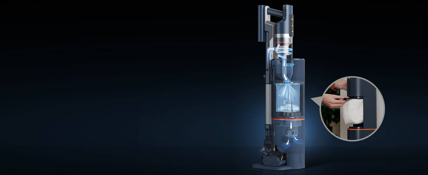 The high-efficiency 450W digital motor generates a suction power of 30,000 Pa.